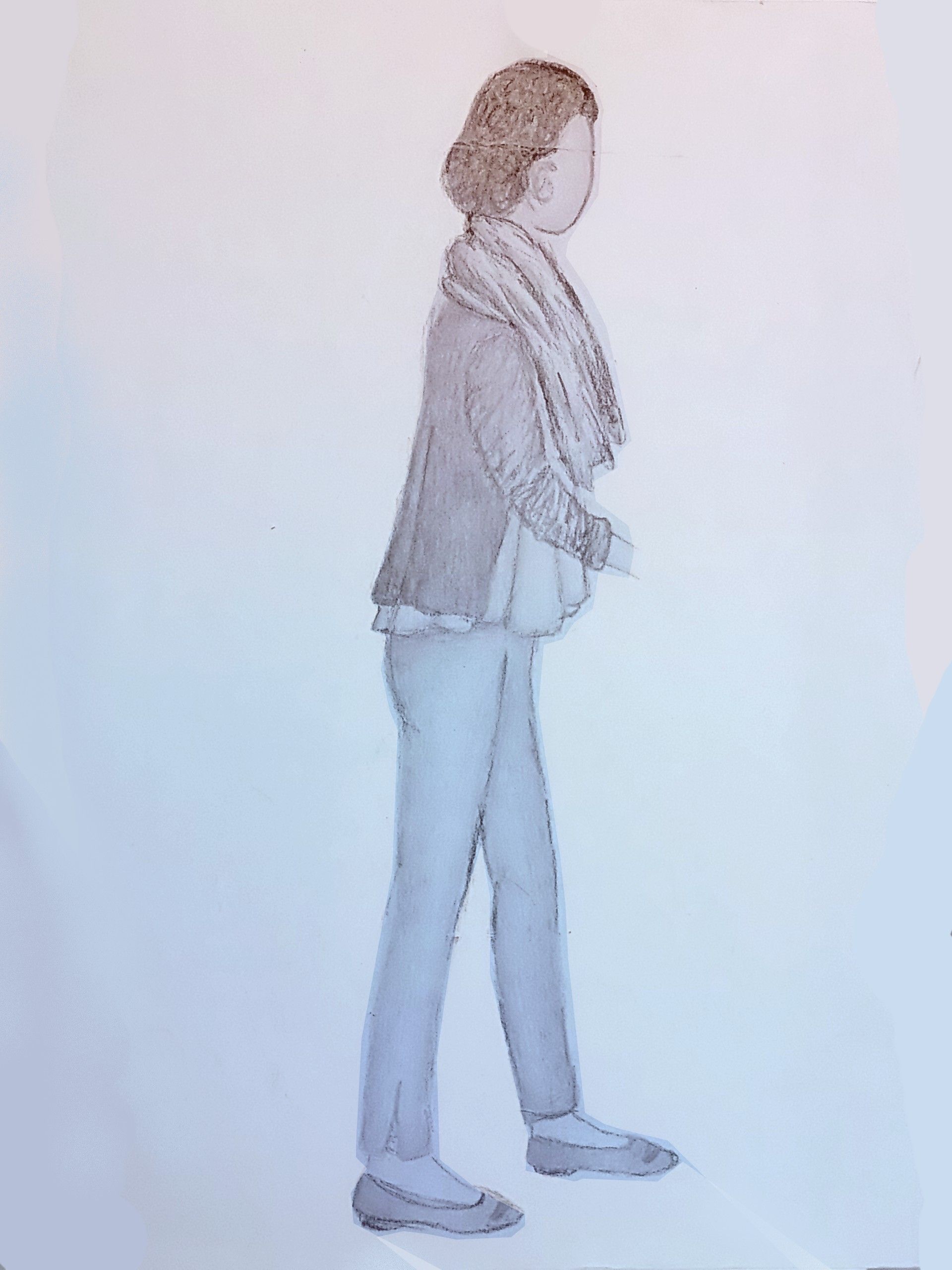 Bref ; ici, une jeune fille qui marche (oui j'étais près de la fenêtre où beaucoup de monde passe quoi de mieux alors que de dessiner ces jeunes gens présents ?) Ce sont les ombres qui m'ont demandé le plus d'attention ; enfin surtout les ombres de la veste mais je suis assez fière du résultat ! Dîtes-moi ce que vous en pensez pour que je m'améliore et pouvoir vous proposer des dessins de meilleure qualité !